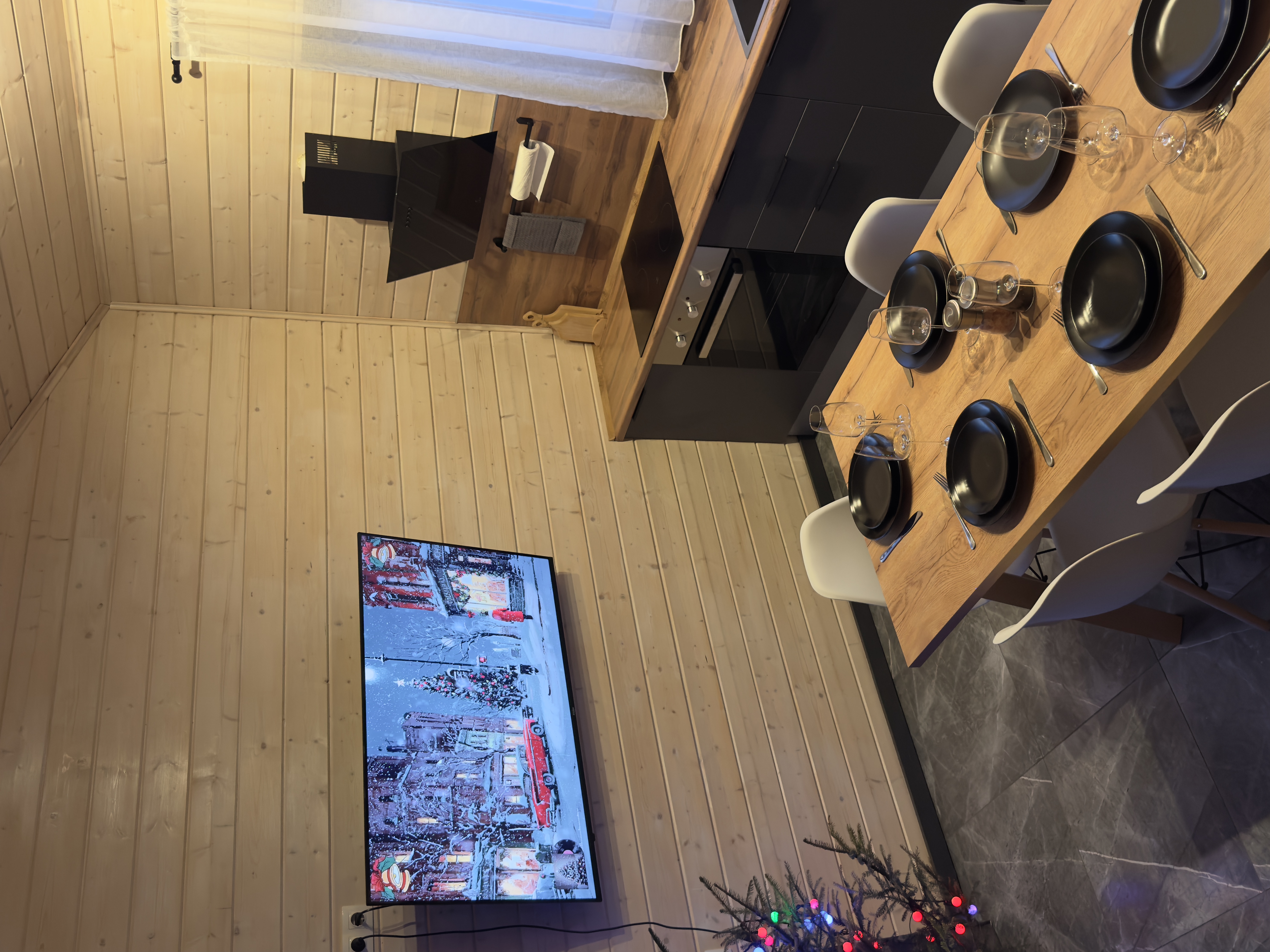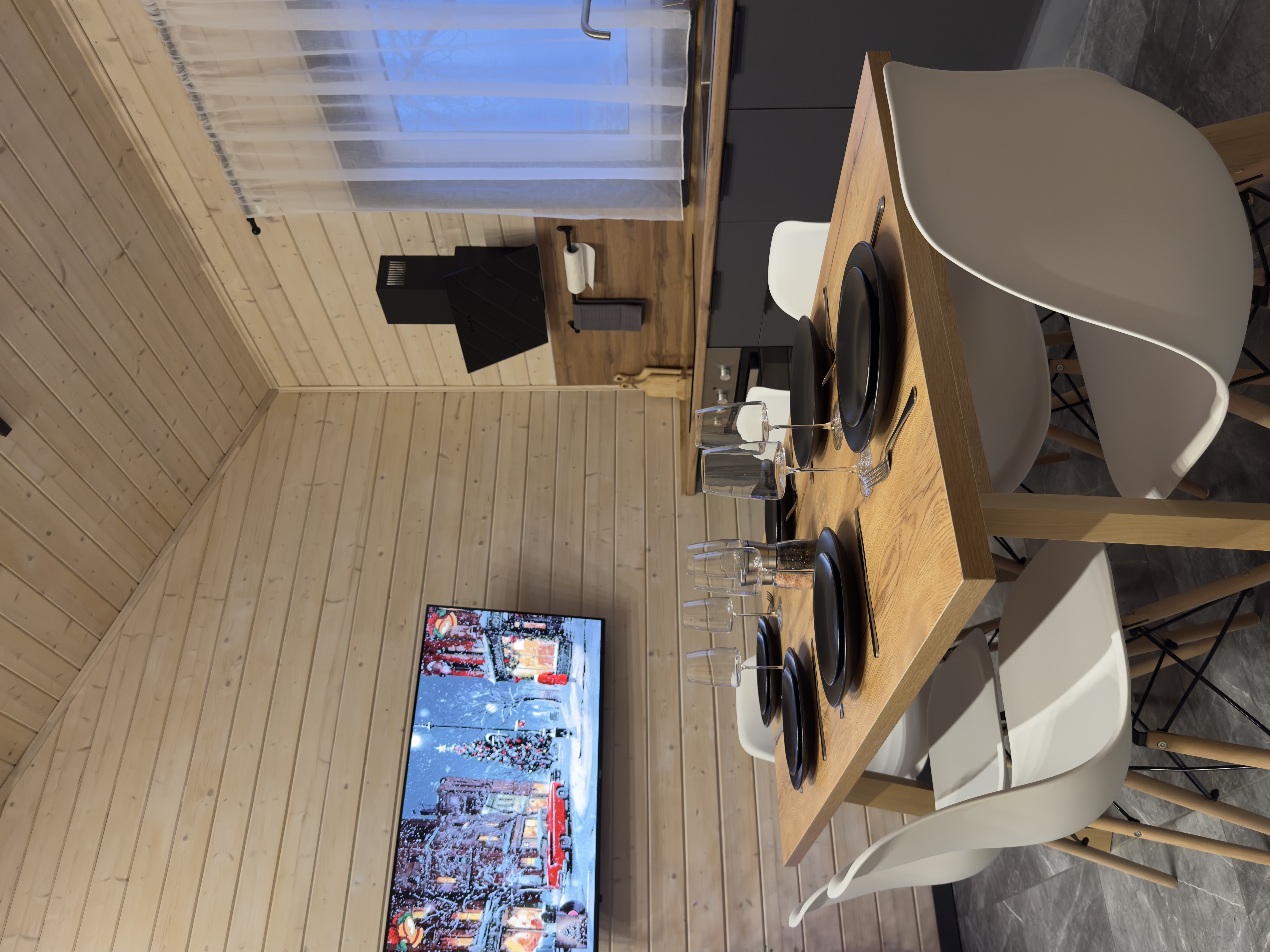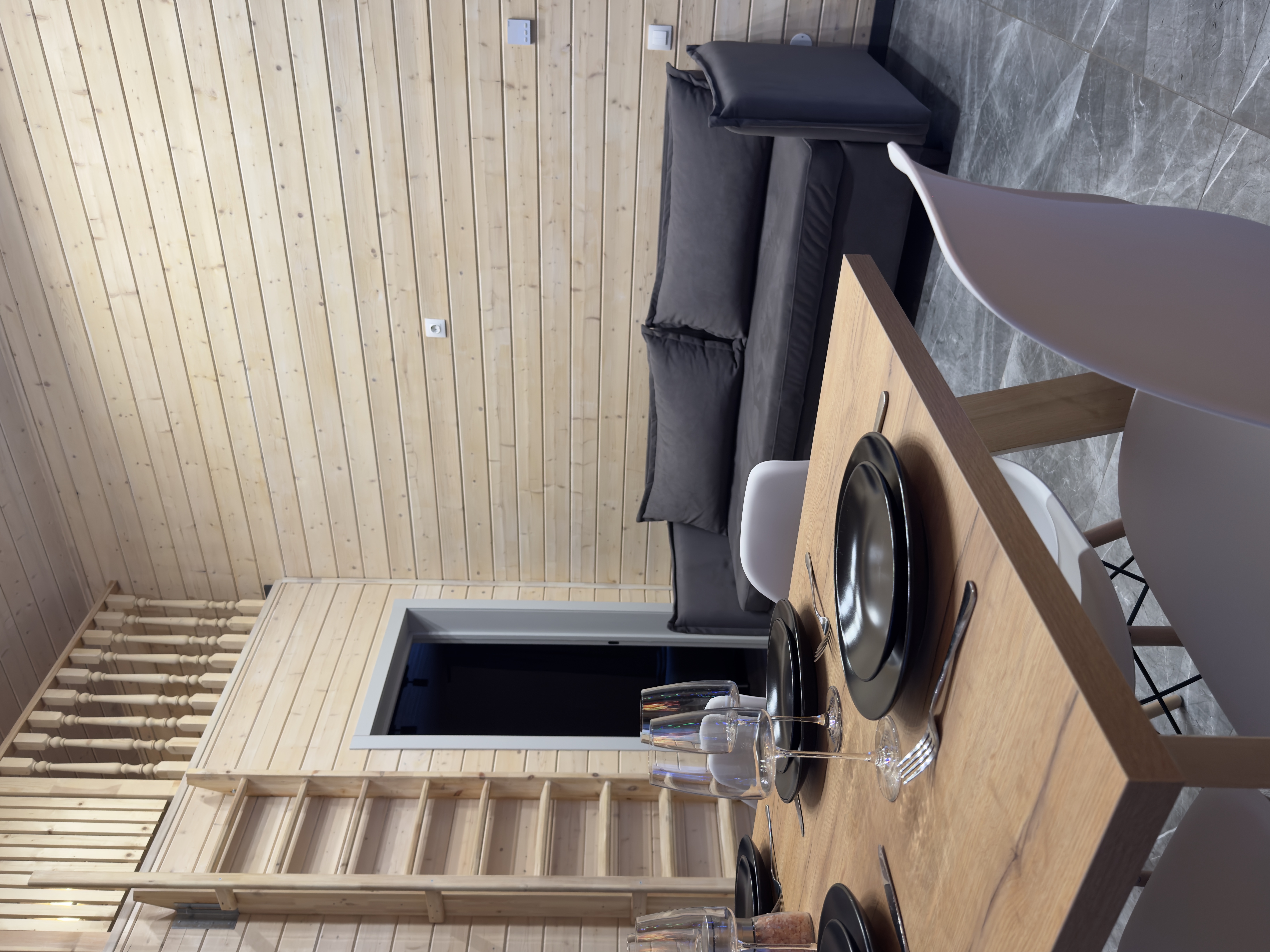Идеальный вариант для семьи или компании друзей. В доме две отдельные спальни и светлая гостиная-кухня с диваном-кроватью. Уютно разместятся до 6 гостей: 4 человека в спальнях и 2 на раскладном диване.